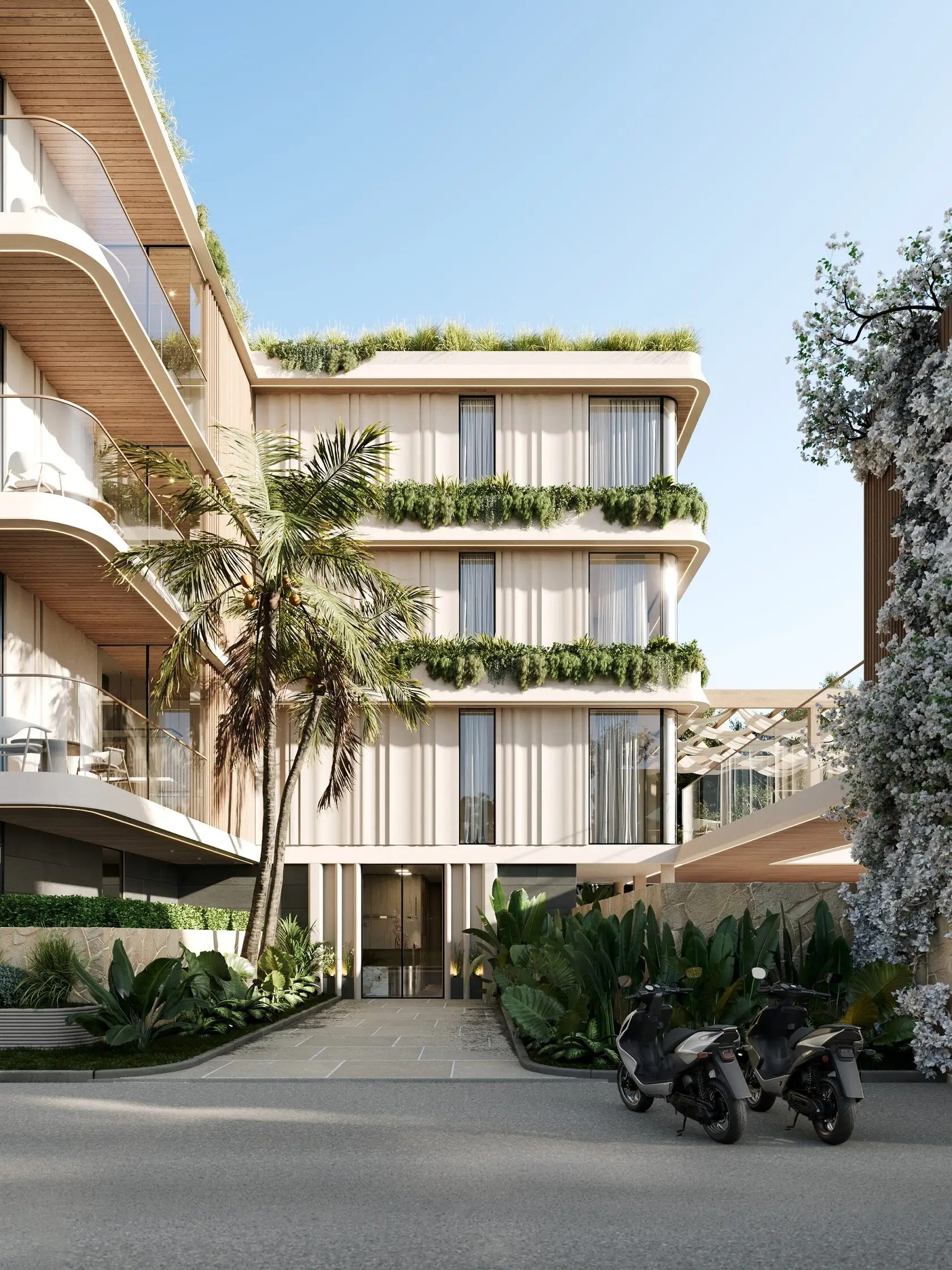 Serenity Spring Retreat is a residential complex located in Cemagi on Bali's southwest coast. The project features modern apartments designed with comfort and sustainability in mind. Each apartment includes private pools, contemporary finishes, and practical layouts ranging from 30 sqm, with options of one or two bedrooms.